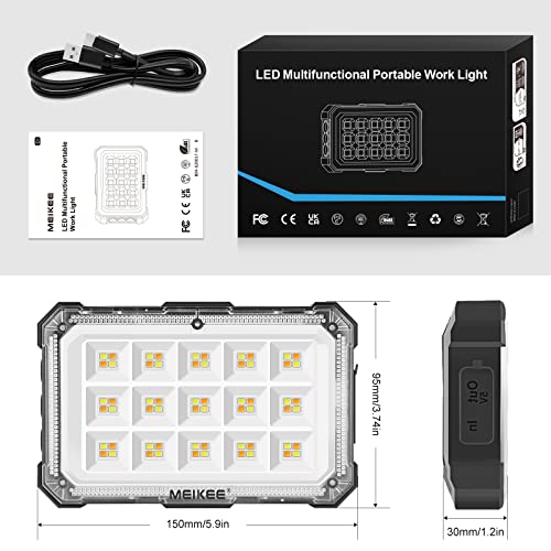 MEIKEE Faro Luce LED Portatile, 60LED Faretto a Batteria Ricaricabile con Cavo USB, 4000mAh Batteria Integrata, Modalità SOS, Torcia, 3 Colore, 5 Luminosità, Luci da Lavoro per Campeggio, Emergenza