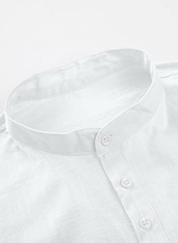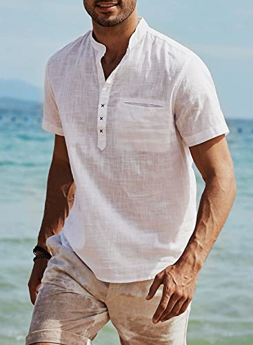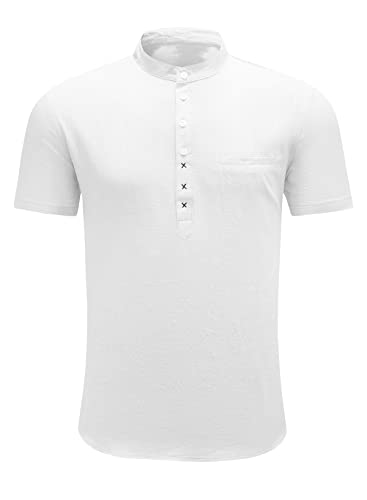 Meilicloth Camicia Lino Uomo Coreana Cotone Manica Corta Estiva Henley Casual con Bottoni Regular Fit Bianca L