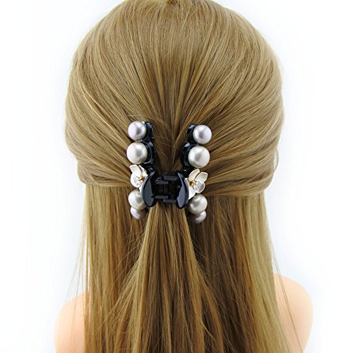 Meilliwish Nuovo stile Perla gemma Fiores Bellissimo Clip artiglio per capelli per le donne ragazze(D64)
