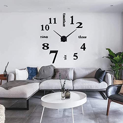 Mein HERZ Senza Telaio Orologio da Parete Grande 3D Nuova Decorazione della Parete di casa Orologio da Parete Fai da Te Muto Acrilico Decorazione della Parete di casa/Ufficio/Hotel/Ristorante(Nero)
