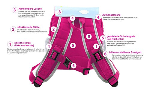 Mein zwergenland SET 4 ZAINO PER L'asilo con scatola pranzo e Sacca sportiva HAPPY Knirps PROSSIMO stampa con nome FUCSIA - CERVO, Rucksack einzeln