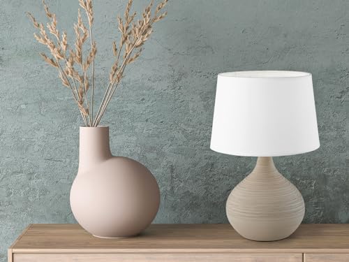 MeineWunschleuchte Lampada da tavolo altezza 29 cm con base in ceramica beige e paralume in tessuto bianco