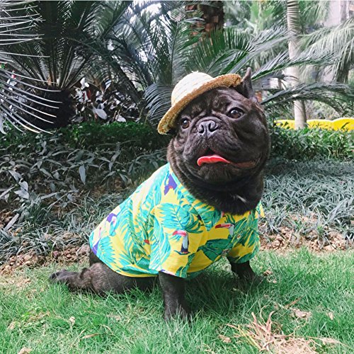 Meioro Abbigliamento per animali Vestiti per cani Comodo cane Camicia stile hawaiano Zona di mare Stile Cotone Materiale Cucciolo Bulldog francese Pug (Yellow-L)