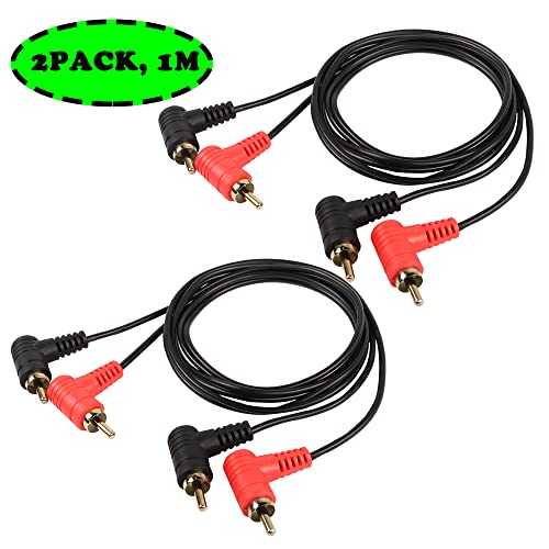 MEIRIYFA 2 cavi audio stereo RCA M/M, confezione da 2 pezzi, angolo retto da 90 gradi da 2 maschio a 2 maschio RCA per home theater, HDTV, amplificatori, altoparlanti (1 m)