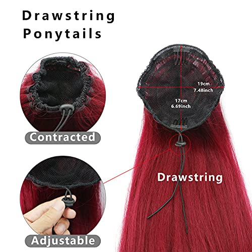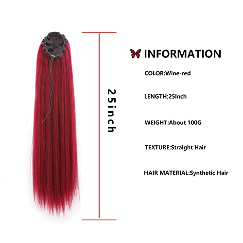 MEIRIYFA - Extension rossa a coda di cavallo, dritta e lunga, con coulisse e clip, stile afro, alta, voluminosa e crespa, 63,5 cm, per donne nere
