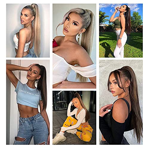 Facile da indossare: Hai solo bisogno di legare i capelli in uno chignon e attaccare la parrucca a coda di cavallo. La retina regolabile con coulisse avvolge completamente i capelli, migliora la lunghezza e lo spessore dei capelli.
