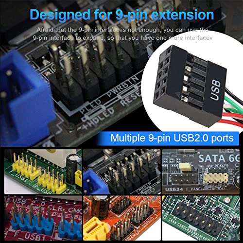 Ampia applicazione: l'estensione della scheda madre USB può convertire 1 scheda madre USB 2.0 maschio a 2 femmine. Questo hub USB interno può essere utilizzato come una scheda madre periferica USB può collegare più dispositivi, una buona connessione ideale scheda SSD SATA/PCIE, CPU, ventole di raffreddamento e luce RGB all'interno della scheda madre, salvare la vostra interfaccia USB carenza della scheda madre.
