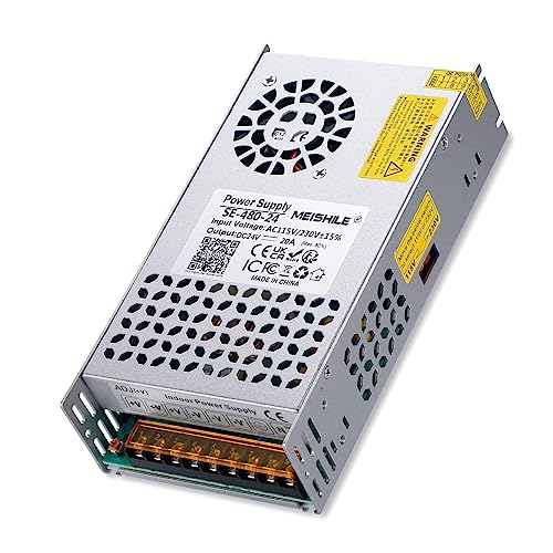 MEISHILE 24V 20A 480W Alimentazione Adattatore CA a CC Traspermatori Alimentatore Convertitore per Lampada a striscia LED, Stampante 3D, Amplificatore, Macchina, 230V 220V a 24Volt 5A 10A 15A 16Amp