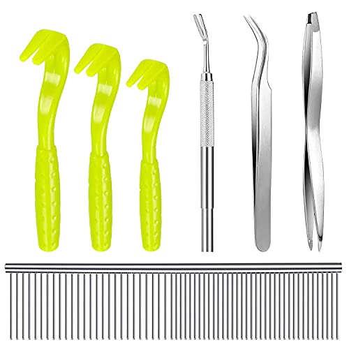 【 Set di rimozione zecche 】 Kit di rimozione delle zecche composto da 7 strumenti: 1 x pinzetta curva, 1 x pinzetta a doppia faccia, 1 x gancio per la rimozione delle zecche, 3 x Dispositivo di rimozione delle zecche, 1 x pettine in acciaio inox.
