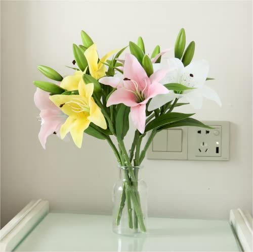 MAZZO DI FIORI VIVIDAMENTE REALISTICI - Wow, i nostri clienti possono ottenere giglio artificiale realistici! Ogni fiore è accuratamente realizzato con un alto livello di dettaglio. I petali hanno un tocco realistico e sono più realistici dei petali di seta.