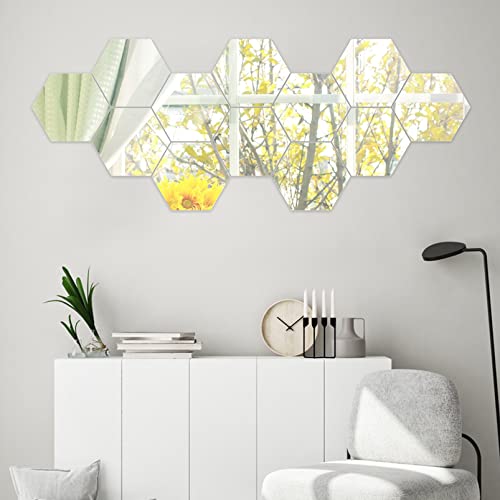 MEIYAXINWIN 12 Pezzi Adesivo da Parete a Specchio, Esagonale Autoadesive Specchio Adesivi per la Decorazione della Camera da Letto dell'Ufficio Domestico
