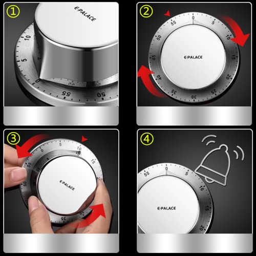 Meiyijia Timer Meccanico Timer da Cucina Strumento da Cucina in Acciaio Inossidabile con Base Magnetica