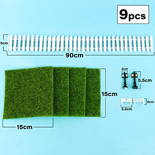 Il pacchetto include: 9 pezzi accessori miniatura di giardino: 1pz recinzione, 4pz piccolo prato sintetico, 2pz lampione, 2pz panchina.