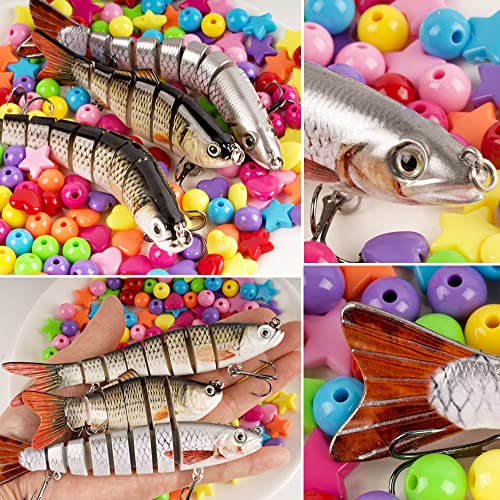 MEJOSER 3 Pezzi Set Esche Artificiali Spinning con Scatola Esca Finta Esche da Pesca a più Sezioni Dura con Ganci