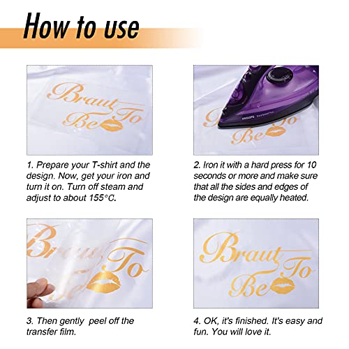 MEJOSER 8 Pz Toppe Termoadesivi Scritte Tedesco Oro Braut To Be Braut Crew Applique Patch Ferro da Stiro Toppe per Vestiti Abbigliamento