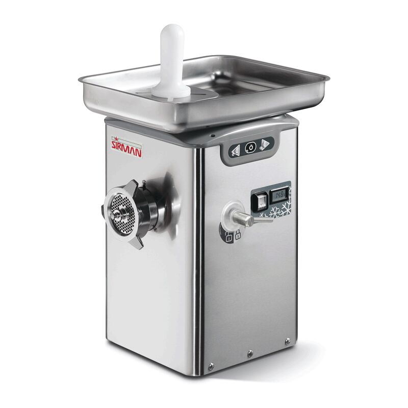 Potenza 1ph watt 1.100/Hp 1,5 - 3ph watt 1.472/Hp 2 Alimentazione 1ph/3ph Potenza modulo termoelettrico watt 70 Prod. oraria kg/h. 300 Piastra in dotazione ø mm 4,5 A mm 252 B mm 252 C mm 345 D mm 485 E mm 225 F mm 540 G mm 645 Peso netto kg 30 Dim. imballo mm 720x570x770 Peso lordo kg 44 HS-CODE 84385000Innovativo e supercompatto tritacarne refrigerato. - Sistema raffreddante con modulo termoelettrico: Senza compressore. Senza gas. A risparmio energetico. - Potenza modulo termoelettrico: 70 Watt - Raffreddamento su collo e bocca. - Termometro digitale di controllo. - Tramoggia e collo inox rimovibili per la pulizia. - Caratteristiche TC come modello Barcellona. - Qualsiasi manutenzione non necessita di frigorista. - Collo di introduzione quadro per grande produttività anche in seconda passata. - Motori monofase con protezione termica. - Blocco rapido bocca brevettato su 32. - Opzioni: Bocca unger e semiunger. Hamburgatrice. Insaccatrice continua. Tramoggia gigante. Gambe medie.