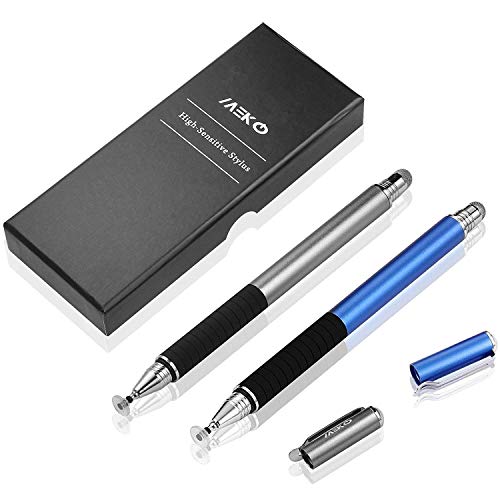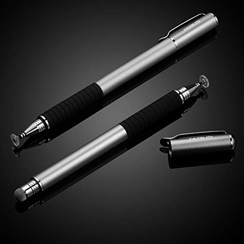 MEKO 2-in-1 Penna di Precisione per Touch Screen con 6 Punte Sostituibili Pennino Capacitivo per iPad, Tablet, iPhone, Smartphone, Samsung Galaxy Note/Tab - Grigio + Blu