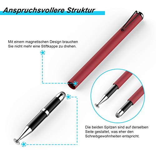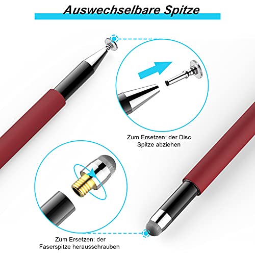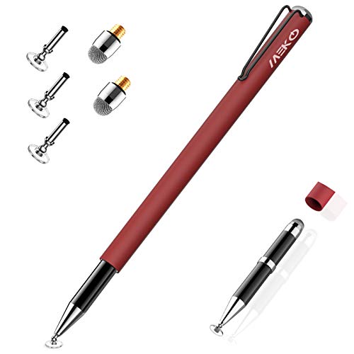 Meko - Penna a sfera universale 2 in 1 per tablet, 100% compatibile con tutti i tablet, touchscreen, iPhone, iPad, Surface Huawei, ecc., 5 punte di ricambio (rosso)