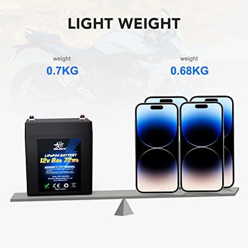 Melasta Batteria al Litio LiFePO4 12V 6Ah Ferro Fosfato Ricaricabile a Ciclo Profondo Fino a 1500 Cicli Batteria Ricaricabile con Protezione BMS per kit Fotovoltaico, Barca, Scooter,Trolling Motor