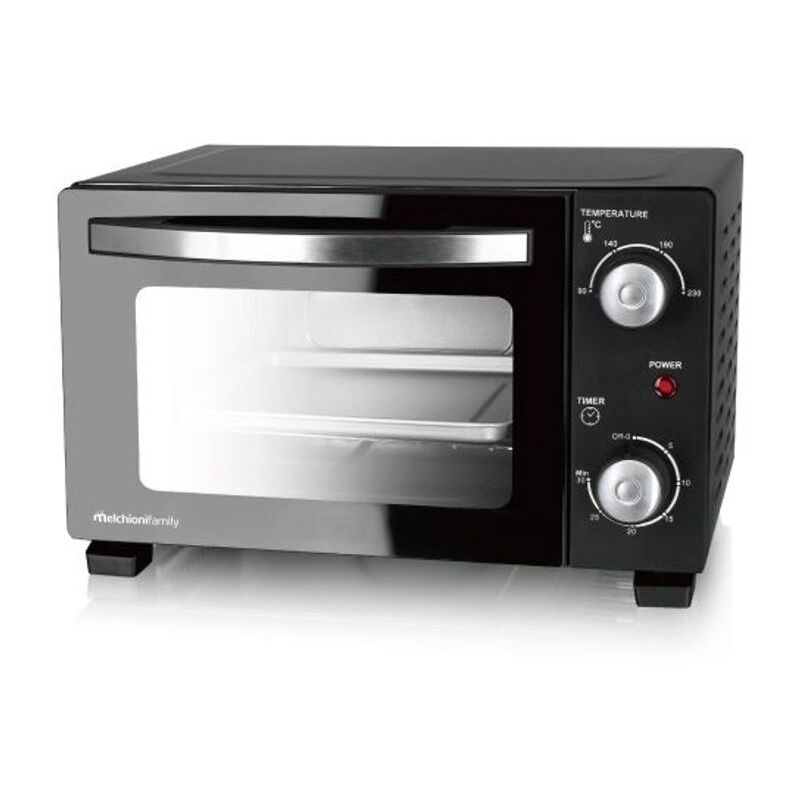 Melchioni 118380035. Tipo di forno: Forno elettrico, Capacità interna forno totale: 11 L, Potenza totale del forno: 800 W. Posizionamento dell'apparecchio: Superficie piana, Colore del prodotto: Nero, Tipo di controllo: Manopola. Timer da 30 minuti: 30 min. Carico di collegamento: 800 W, Tensione di ingresso AC: 220 - 240 V, Frequenza di ingresso AC: 50 Hz. Larghezza: 373 mm, Profondità: 234 mm, Altezza: 310 mm Forno Numero di forni 1 Tipo di forno Forno elettrico Capacità interna forno totale 11 L Potenza totale del forno 800 W Capacità netta del forno 11 L Temperatura massima (convezione) 230 °C Design Posizionamento dell'apparecchio Superficie piana Colore del prodotto Nero Tipo di controllo Manopola Colore del manico Stainless steel Colore dei pomelli Stainless steel Display incorporato No Ergonomia Timer da 30 minuti 30 min Gestione energetica Carico di collegamento 800 W Tensione di ingresso AC 220 - 240 V Frequenza di ingresso AC 50 Hz Dimensioni e peso Larghezza 373 mm