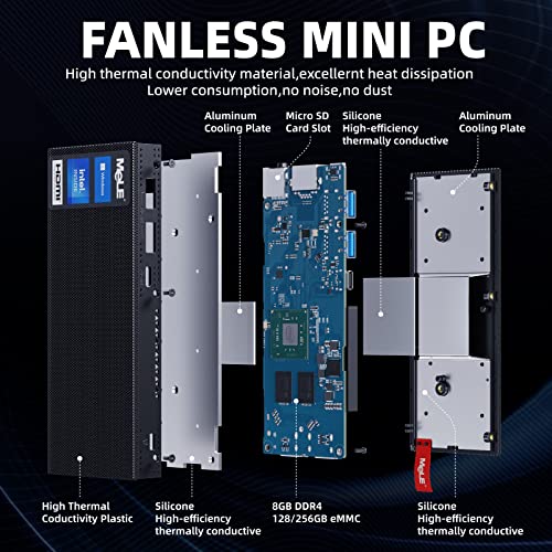 【Design senza ventola, tascabile e portatile】La tecnologia fanless con rumore di 0dB offre un'esperienza di lavoro silenziosa e confortevole. Il computer, dal design palmare, può essere messo in tasca e trasportato facilmente per un viaggio di lavoro. Inoltre, il PC desktop è dotato di una staffa per il montaggio VESA, che consente di appenderlo al retro di un televisore o di un monitor.