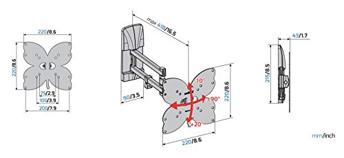 DA 26" A 45": sostegno TV da muro per TV a schermo piatto da 26" a 45" con una rotazione verticale -10°/+20° e rotazione orizzontale ±90°;