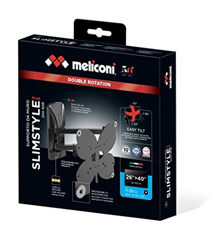 Meliconi Slimstyle Plus 200 SDR, Supporto TV Parete con Doppio Braccio, Supporto TV Inclinabile, Staffa per TV a Schermo Piatto da 26" a 45", Attacco VESA 75-100-200, Portata 25 Kg, Made in Italy
