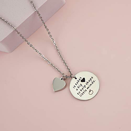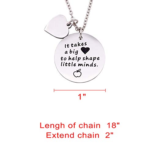 Ciondolo in acciaio inox da 2,5 cm con scritta "It takes a big heart to help shape little minds." e cuore piccolo da 1,2 cm, lunghezza della catena: 45,7 cm + 5,1 cm di estensione della catena