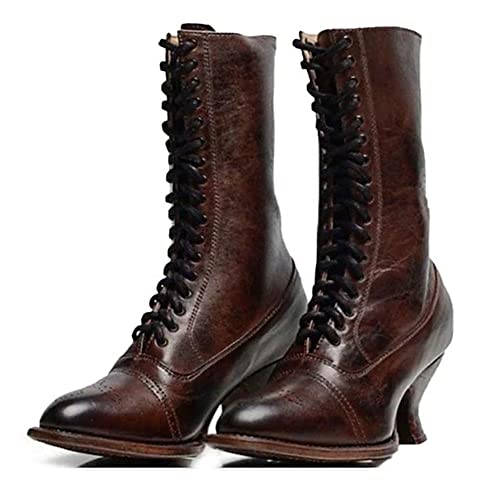 MELKEVDY Per Donna Stivaletti Scarpe Bullock A Rocchetto Punta Tonda Stivali A metà Polpaccio Vintage Quotidiano PU Lacci Tinta Unita/Taglie Forti A Punta Stivali metà Polpaccio,Marrone,35 EU