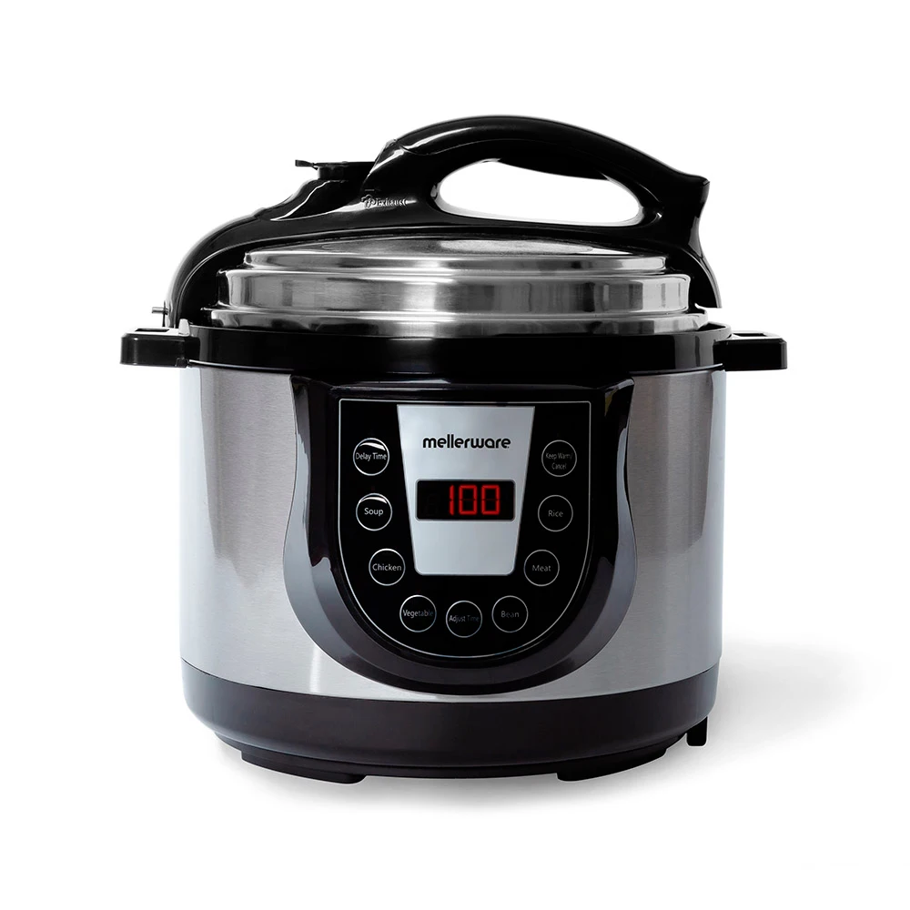 MELLERWARE-JUNO electric pressure cooker. 6 menus. Programmable. Timer. 5L capacity. Stick. Stainless steel