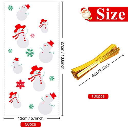 MELLIEX 50 Pezzi Sacchetti Biscotti di Natale, Trasparenti Cellophane Sacchetti Regali Caramelle con Cravatta per Bambini Feste di Natale