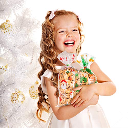 MELLIEX Sacchetti di Caramelle Trasparenti Natalizi da 100 Pezzi Sacchetti di Cellophane Natalizi Ideali con Lacci a Spirale per Articoli per Feste
