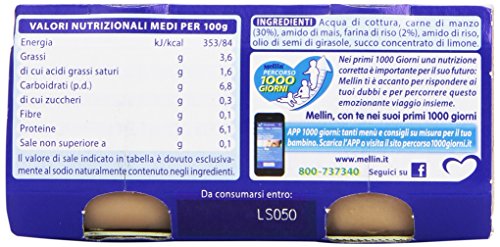 Mellin - Alimento per l'infanzia, omogenizzato con carne di manzo e farina di riso - 12 pezzi da 2 vasetti da 80 g [24 vasetti, 1920 g]