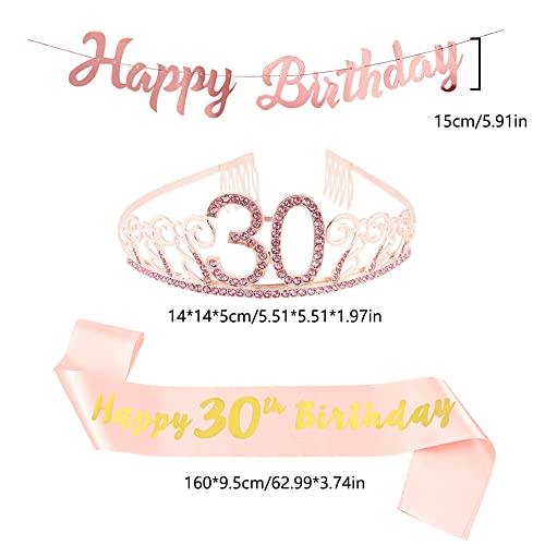 Mellystore Corona Compleanno Tiara con Sash Oro Rosa Glitter Compleanno Tiara Corona con Pettine Compleanno Ragazza Glitter Decor Cristallo con Fascia Compleanno per Ragazza di 30 Anni Compleanno