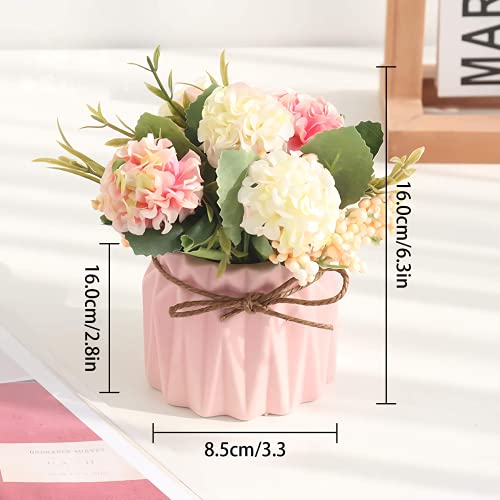 Melodip Bouquet di ortensie Artificiali con Piccolo Vaso in Ceramica varietà di Seta Finta Sfere di Fiori Decorazione di Fiori per la tavola Festa in casa Ufficio Matrimonio (Rosa)
