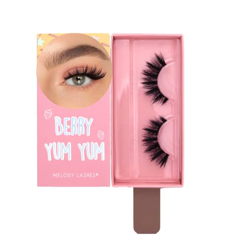 Melody Lashes ciglia finte naturali cat eye artificiali di gatto natural eyelashes fake lashes vegan in qualità premium fino a 15x riutilizzabile (Berry Yum Yum)