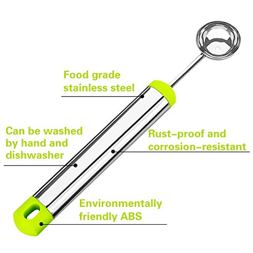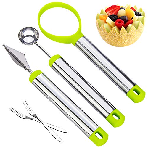 ⊙ Assistente per lo Styling Della Tavola: Tre strumenti per intagliare la frutta con due forchette, questi cucchiai di melone possono preparare squisiti dessert e piatti di frutta. Il buon cibo aggiungerà un po 'di divertimento alle tue riunioni o attività di famiglia.