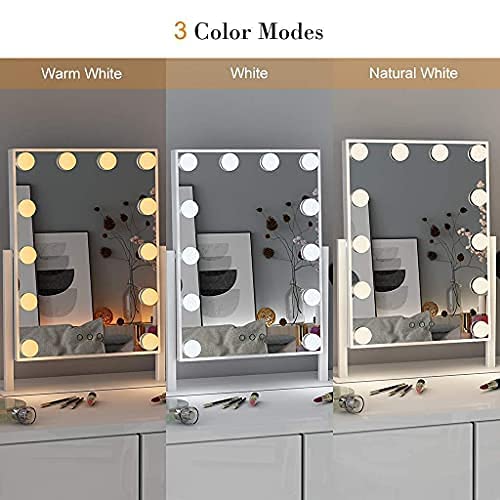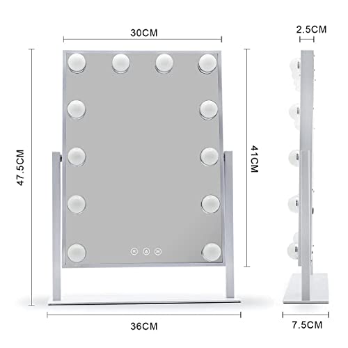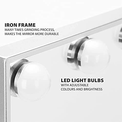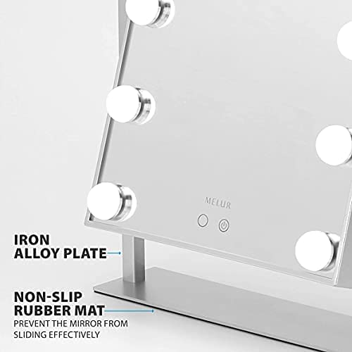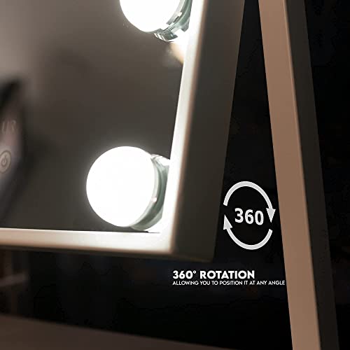 Melur Hollywood specchio trucco illuminato con lampadine LED dimmerabili e design touch-control, Specchio cosmetico luminoso per il trucco da tavolo con luci LED (Bianca)
