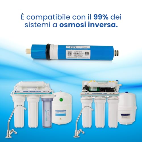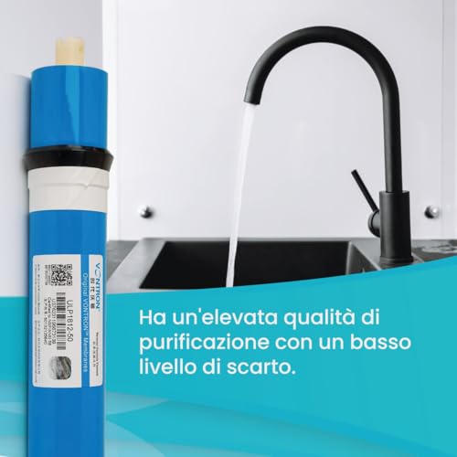 Maggiore compatibilità: questa membrana supporta il 99% delle apparecchiature ad osmosi inversa per ottenere la massima depurazione e poter godere dell'acqua potabile senza acquistare acqua in bottiglia. Questa membrana Vontron 50 GPD (Galloni al giorno) è valida per le apparecchiature di osmosi inversa che utilizzano membrana 50.