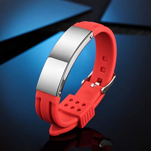 MeMeDIY Bracciale Personalizzato con Nome Incisione Personalizzata per Uomo Donna Ragazzi Ragazze Gomma da Polso in Silicone Sport Identificazione Identificativa (Red Colore, Argento Tono Etichetta)