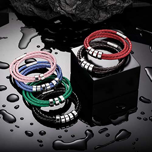 MeMeDIY Braccialetti personalizzati con incisione 2-6 nomi Identificazione di identificazione Perline in vera pelle in acciaio inossidabile Polsino intrecciato Regali per damigella d'onore (6 perline)