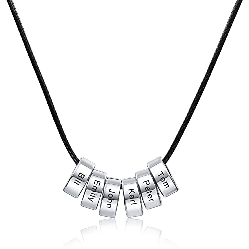 MeMeDIY Collana Personalizzata Incisione Nome Data per Uomo Donna Fidanzato Fidanzata Regolabile Acciaio Inossidabile Cordino in Vera Pelle Regalo(6 Perline Color Argento)
