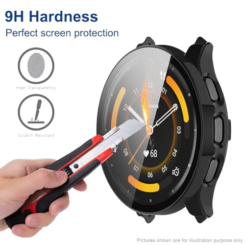 Protezione Complessivo: La cassa è realizzata in resistente materiale PC rigido con una protezione in vetro temperato integrata che copre completamente lo schermo dell'orologio e i bordi curvi. La custodia a copertura totale protegge l'orologio da graffi e cadute.