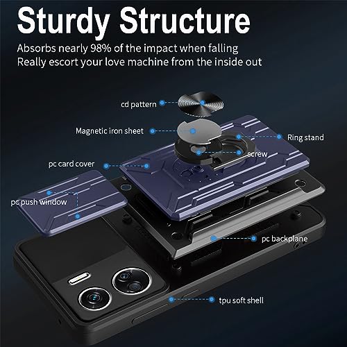 MEMELOKA Cover per Honor 90 Lite con 3 Pezzi Vetro Temperato, Rigida PC Back e TPU Bumper Antiurto Custodia Protettiva[Slidable Fotocamera Proteggi][Slot per Schede][Supporto Girevole] - Blu
