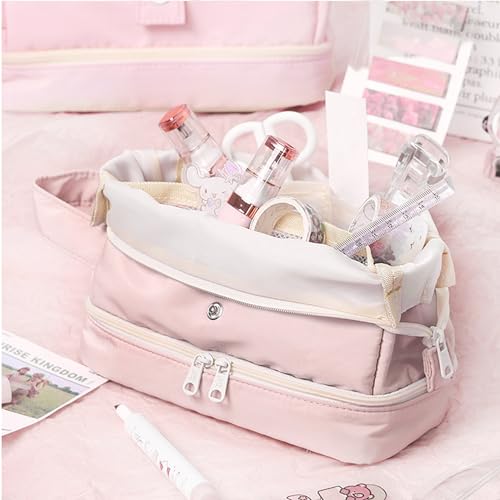 MEMOFYND 1 astuccio portatile con 1 nota adesiva, scatola per cancelleria, astuccio di grande capacità, contenitore multistrato, adatto per adolescenti (rosa), Colore: rosa., 22 * 10 * 9,5 cm,