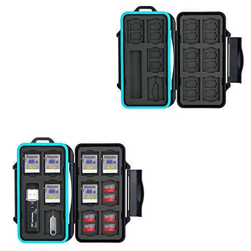 JJC Memory Card Case Carta di Trasporto Resistente all' Acqua del deposito per schede SD, SDHC, SDXC, Micro SD TF con USB 3.0 Lettore di schede di Memoria per SD Micro SD e moschettone