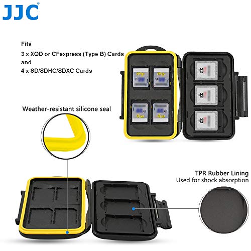 JJC Memory Card Case Custodia Protettiva Immagazzinaggio Resistente All'acqua per 4 x SD SDHC SDXC & 3 x XQD CFexpress Tipo B Carte