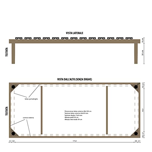 26 doghe realizzate con legno di faggio multistrato piegato a vapore, sezione 30x10mm