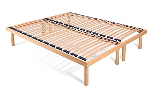 Telaio in legno di faggio di sezione 63mm x 33 mm. Altezza da terra 39 cm circa. Piedi 30cm (su richiesta 35-40 cm a pagamento).