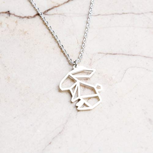 La Menagerie Coniglio Argento, Collana Geometrica d'Argento con Ciondolo Animali Origami - Bigiotteria placcata in Argento Sterling 925 & Collana Donna Coniglio Stilizzato - Gioielli Geometrici